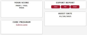 To pass the Lighting Audit, all scored questions must be marked as correct. To remedy any failed questions, a cure can be submitted via the Mystery Shop Portal. During cure review, photos will be analyzed to determine if standards are met, and the question can be marked as correct.
